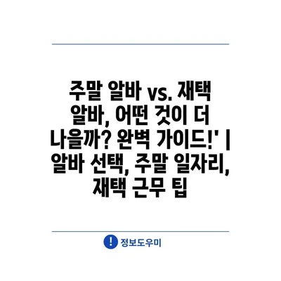 알바를 선택할 때, 많은 사람들이 주말 일자리와 재택 근무의 장단점을 고민합니다.