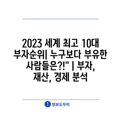 2023 세계 최고 10대 부자순위| 누구보다 부유한 사람들은?!” | 부자, 재산, 경제 분석