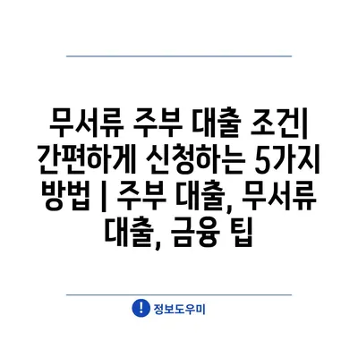 무서류 주부 대출 조건| 간편하게 신청하는 5가지 방법 | 주부 대출, 무서류 대출, 금융 팁