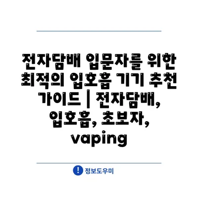 전자담배 입문자를 위한 최적의 입호흡 기기 추천 가이드 | 전자담배, 입호흡, 초보자, vaping