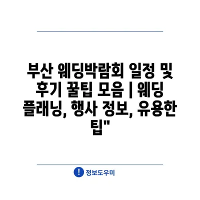 부산 웨딩박람회 일정 및 후기 꿀팁 모음 | 웨딩 플래닝, 행사 정보, 유용한 팁”