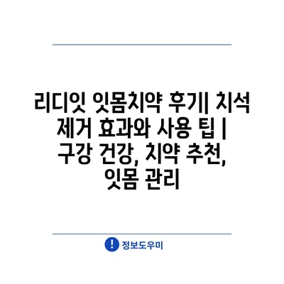 리디잇 잇몸치약 후기| 치석 제거 효과와 사용 팁 | 구강 건강, 치약 추천, 잇몸 관리