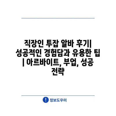 직장인 투잡 알바 후기| 성공적인 경험담과 유용한 팁 | 아르바이트, 부업, 성공 전략