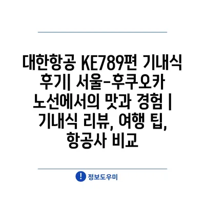 대한항공 KE789편 기내식 후기| 서울-후쿠오카 노선에서의 맛과 경험 | 기내식 리뷰, 여행 팁, 항공사 비교