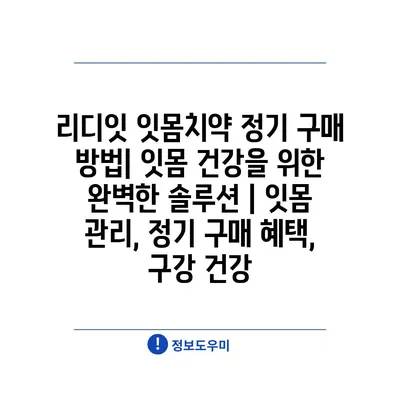 리디잇 잇몸치약 정기 구매 방법| 잇몸 건강을 위한 완벽한 솔루션 | 잇몸 관리, 정기 구매 혜택, 구강 건강