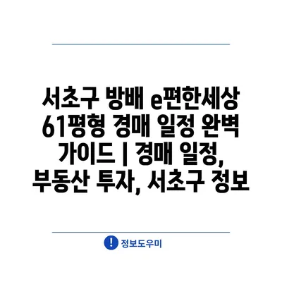 서초구 방배 e편한세상 61평형 경매 일정 완벽 가이드 | 경매 일정, 부동산 투자, 서초구 정보