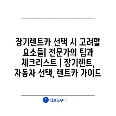 장기렌트카 선택 시 고려할 요소들| 전문가의 팁과 체크리스트 | 장기렌트, 자동차 선택, 렌트카 가이드