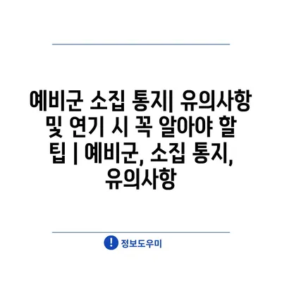 예비군 소집 통지| 유의사항 및 연기 시 꼭 알아야 할 팁 | 예비군, 소집 통지, 유의사항