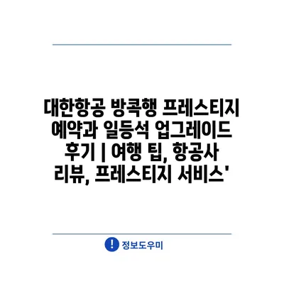 대한항공 방콕행 프레스티지 예약과 일등석 업그레이드 후기 | 여행 팁, 항공사 리뷰, 프레스티지 서비스’