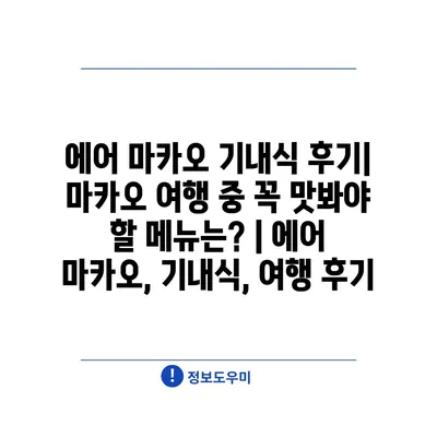 에어 마카오 기내식 후기| 마카오 여행 중 꼭 맛봐야 할 메뉴는? | 에어 마카오, 기내식, 여행 후기