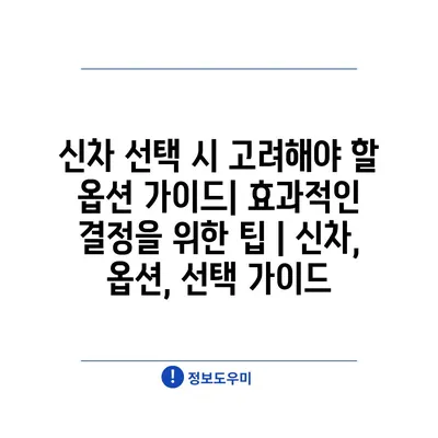 신차 선택 시 고려해야 할 옵션 가이드| 효과적인 결정을 위한 팁 | 신차, 옵션, 선택 가이드